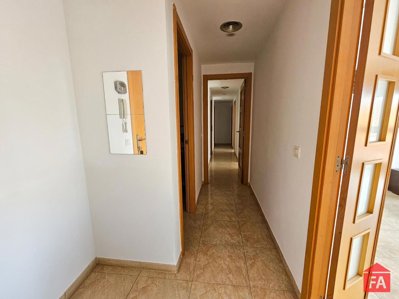 En cuanto a acabados y extras, la vivienda dispone de carpintería interior de madera y exterior de aluminio con doble acristalamiento, lo que asegura confort térmico y acústico, y suelos de gres de fácil mantenimiento.
