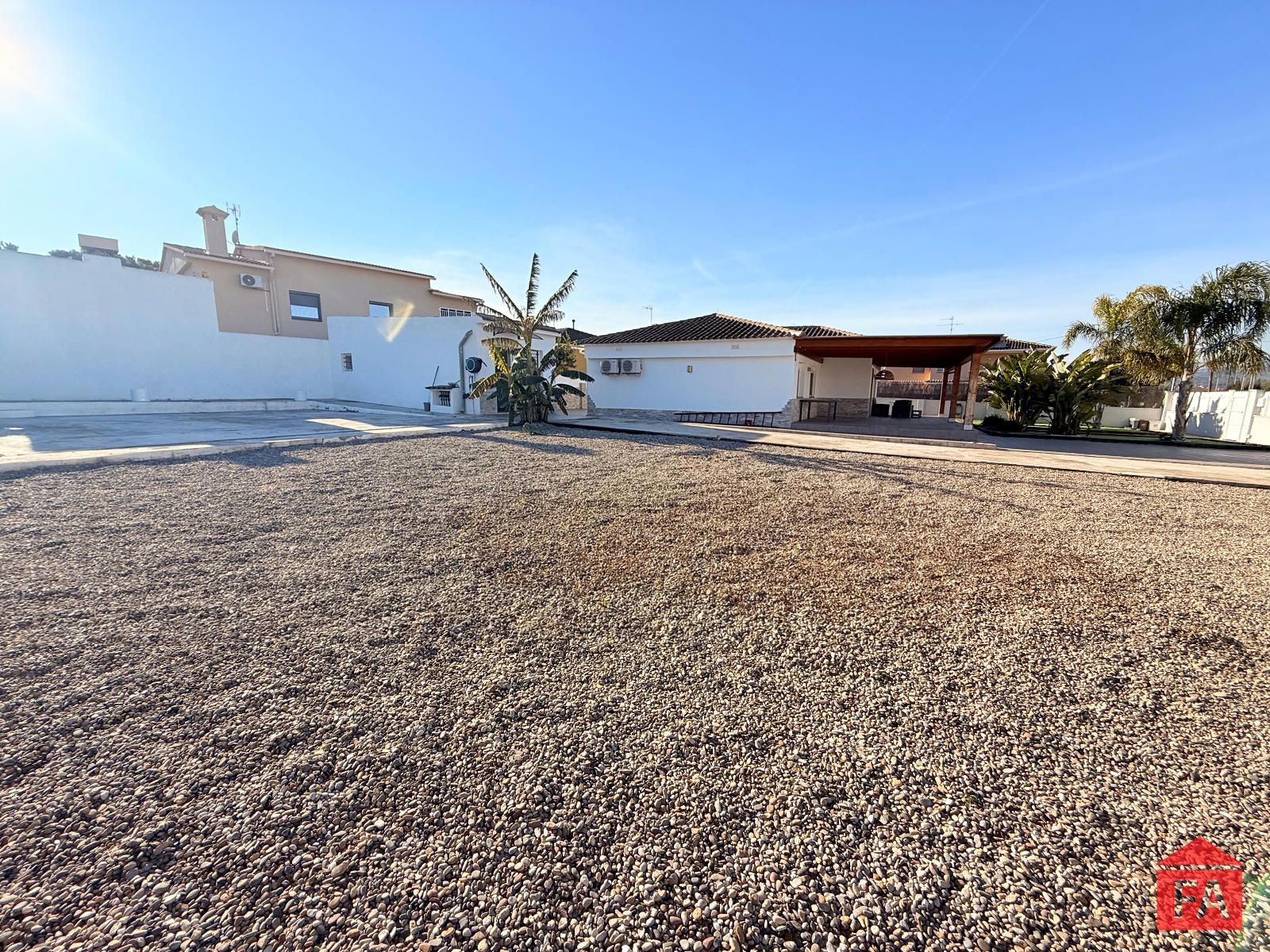 El terreno es amplio, ofreciendo múltiples posibilidades de uso y disfrute al aire libre, con zonas ajardinadas y gran privacidad.