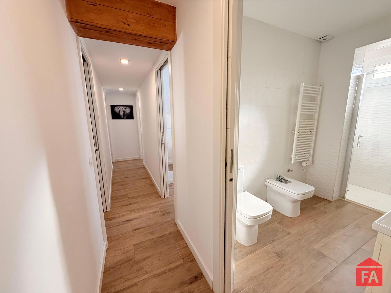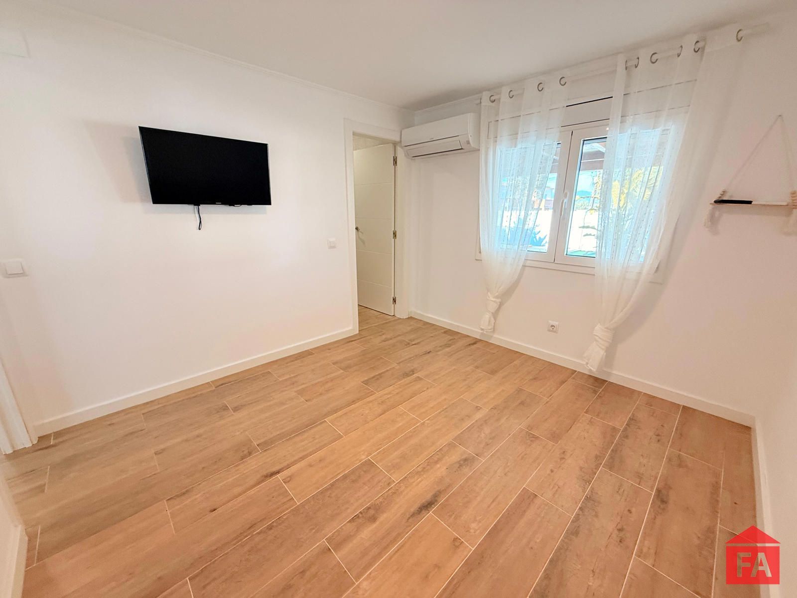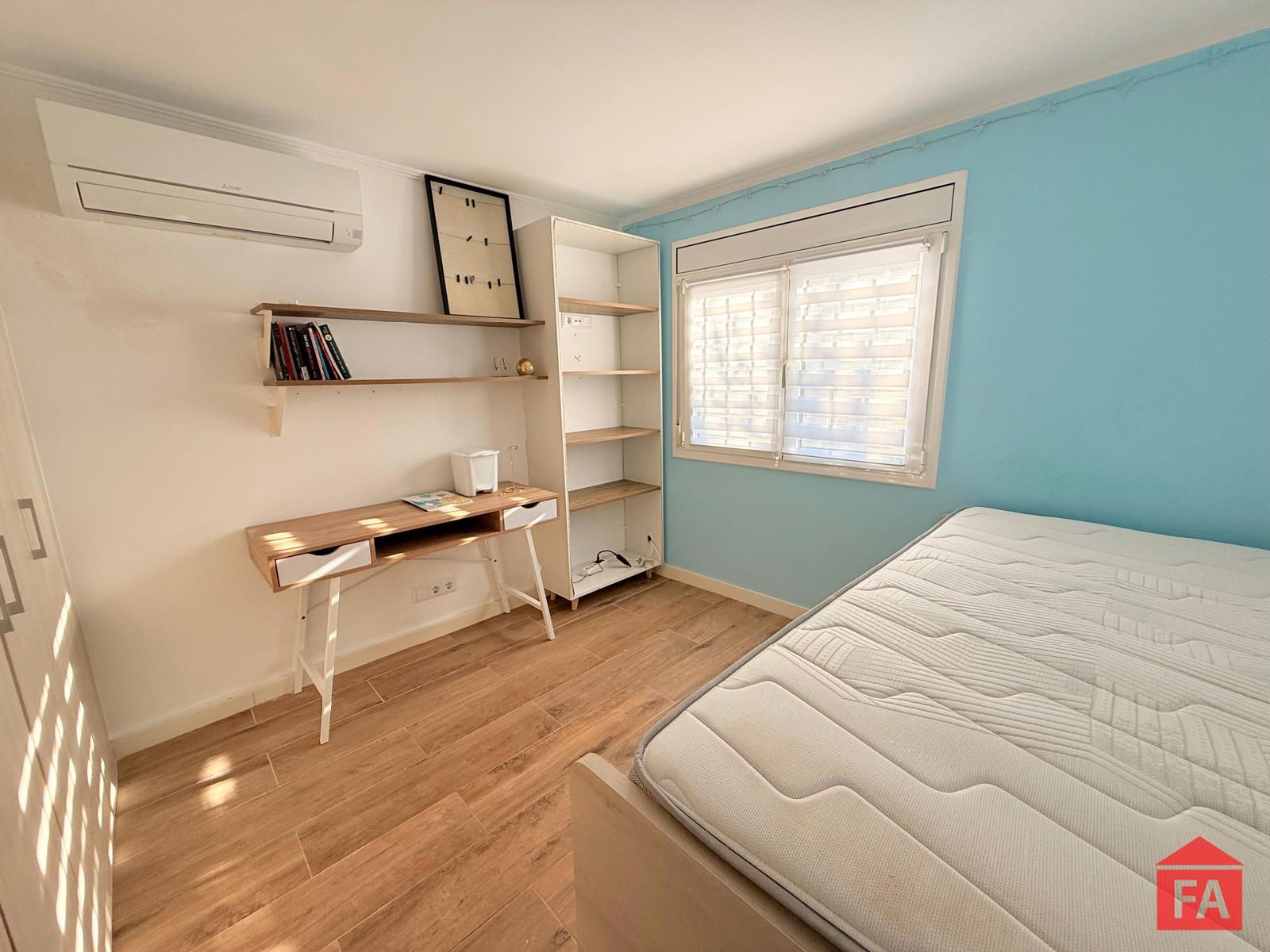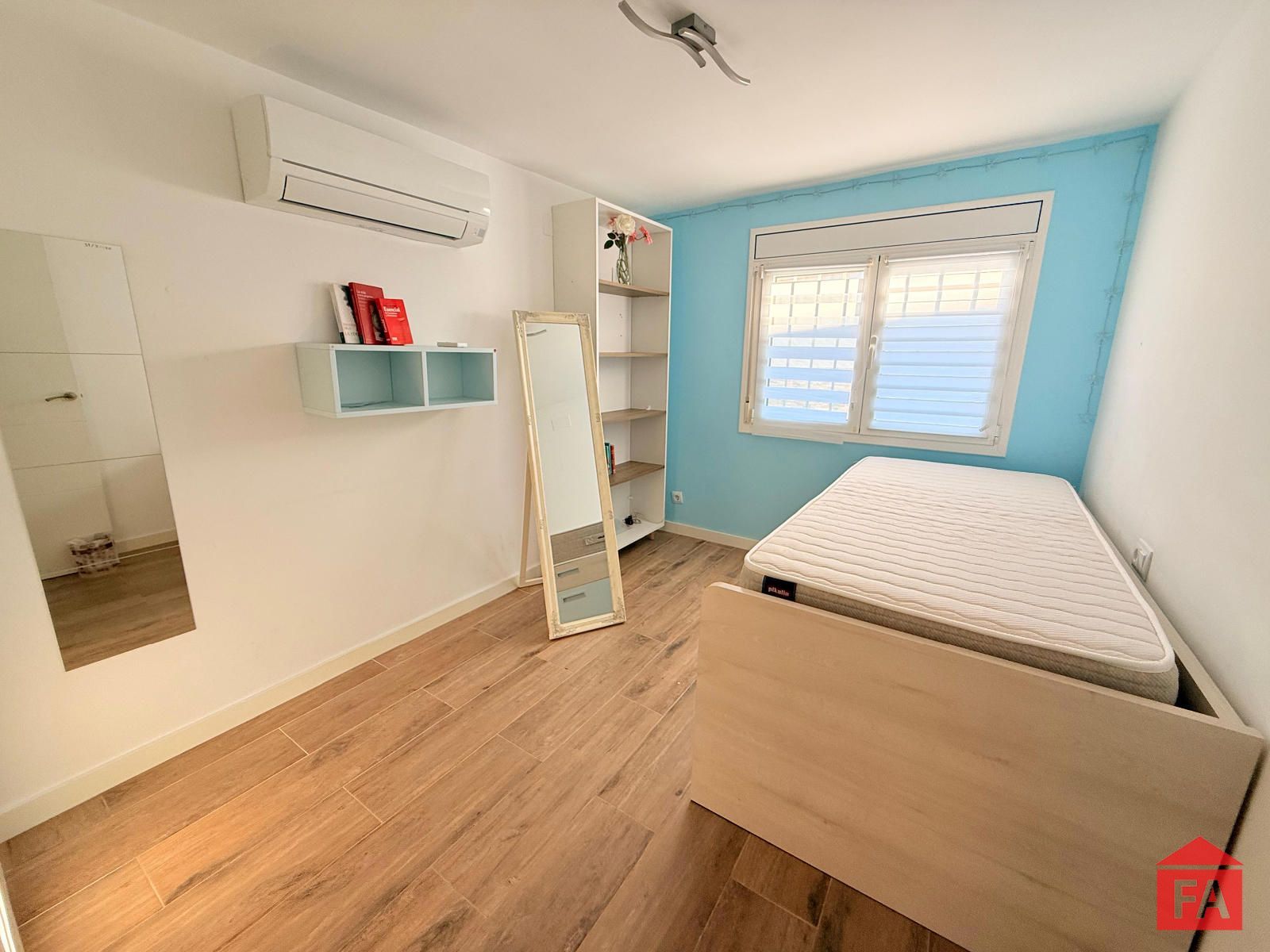 La vivienda dispone de suelo porcelánico en todas sus estancias, aportando continuidad, elegancia y fácil mantenimiento. Cuenta con cuatro dormitorios dobles, uno de ellos actualmente reconvertido en un vestidor. Tres de los dormitorios disponen de split de aire acondicionado frío/calor y dos de ellos cuentan con armarios empotrados.