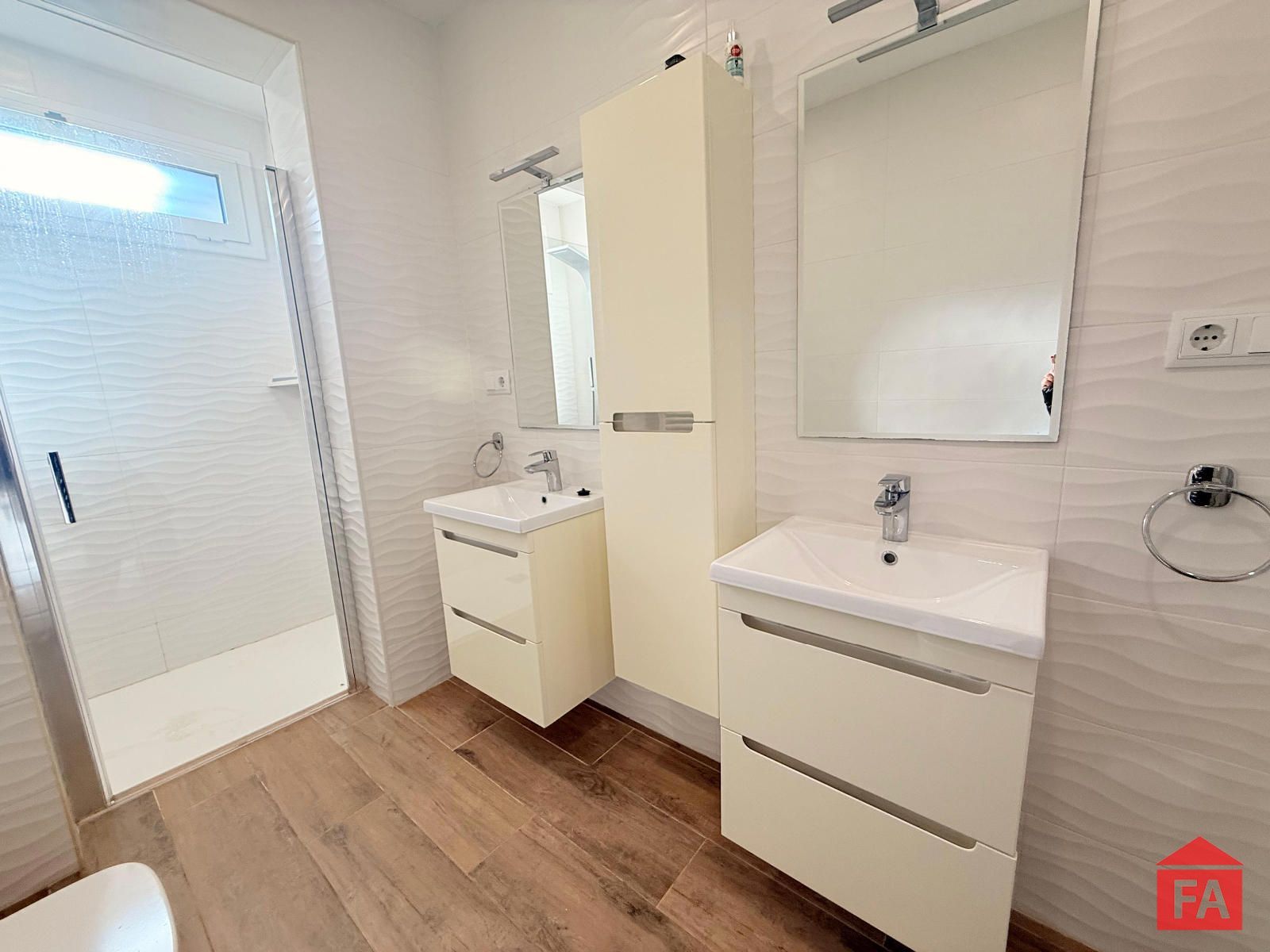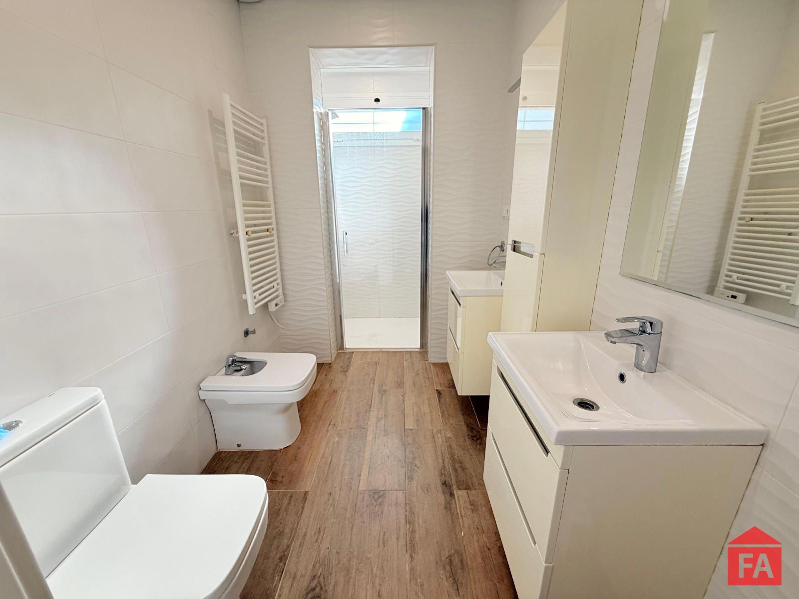 En cuanto a los baños, la vivienda ofrece dos baños completos, ambos de diseño moderno y funcional. Uno de ellos es tipo suite, equipado con ducha de hidromasaje, mampara y dos picas independientes. El segundo baño también dispone de ducha con hidromasaje, mampara y doble lavabo, ofreciendo máximo confort y practicidad.