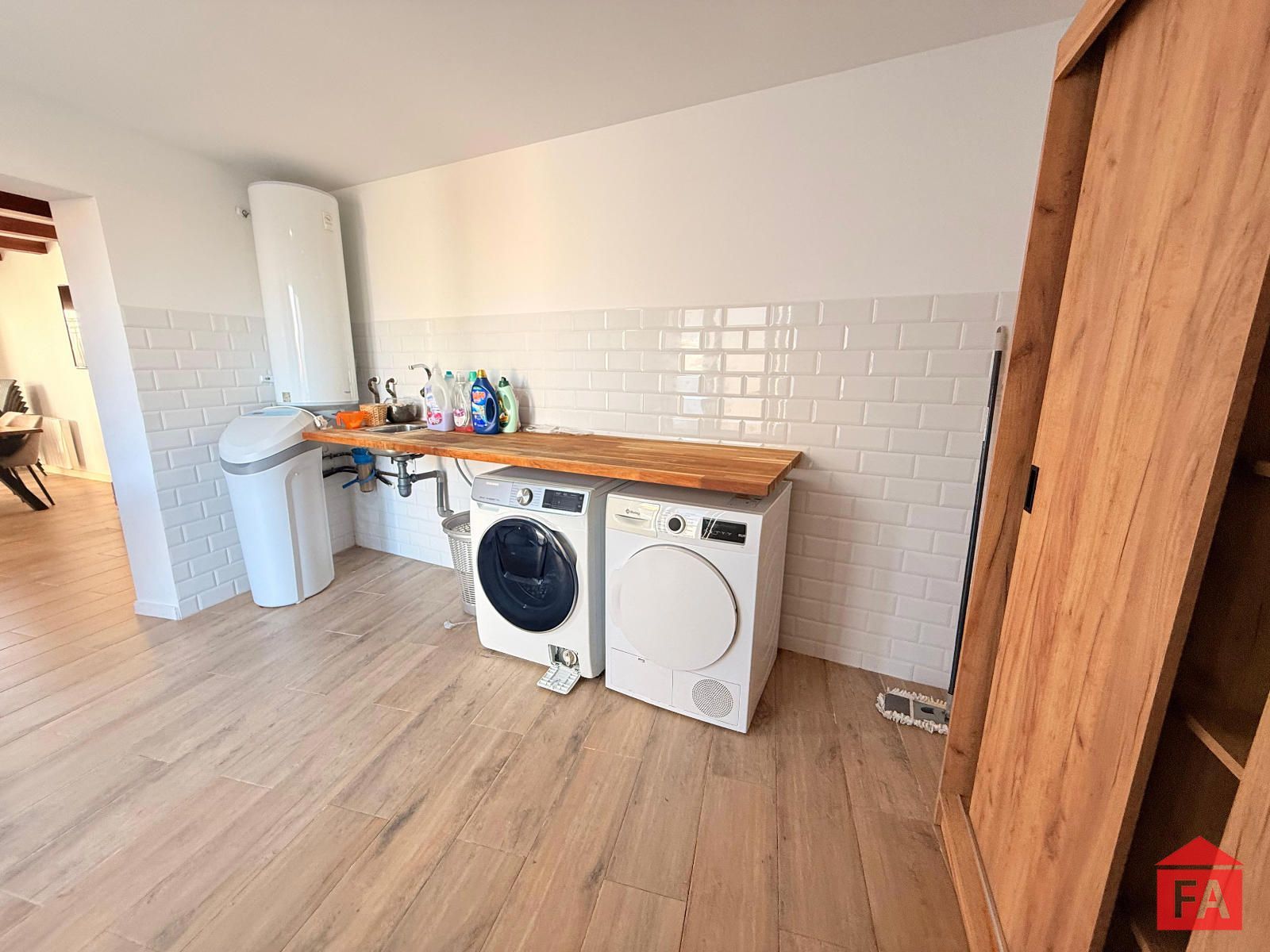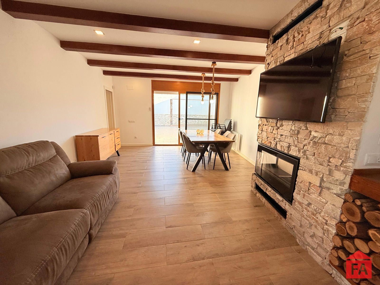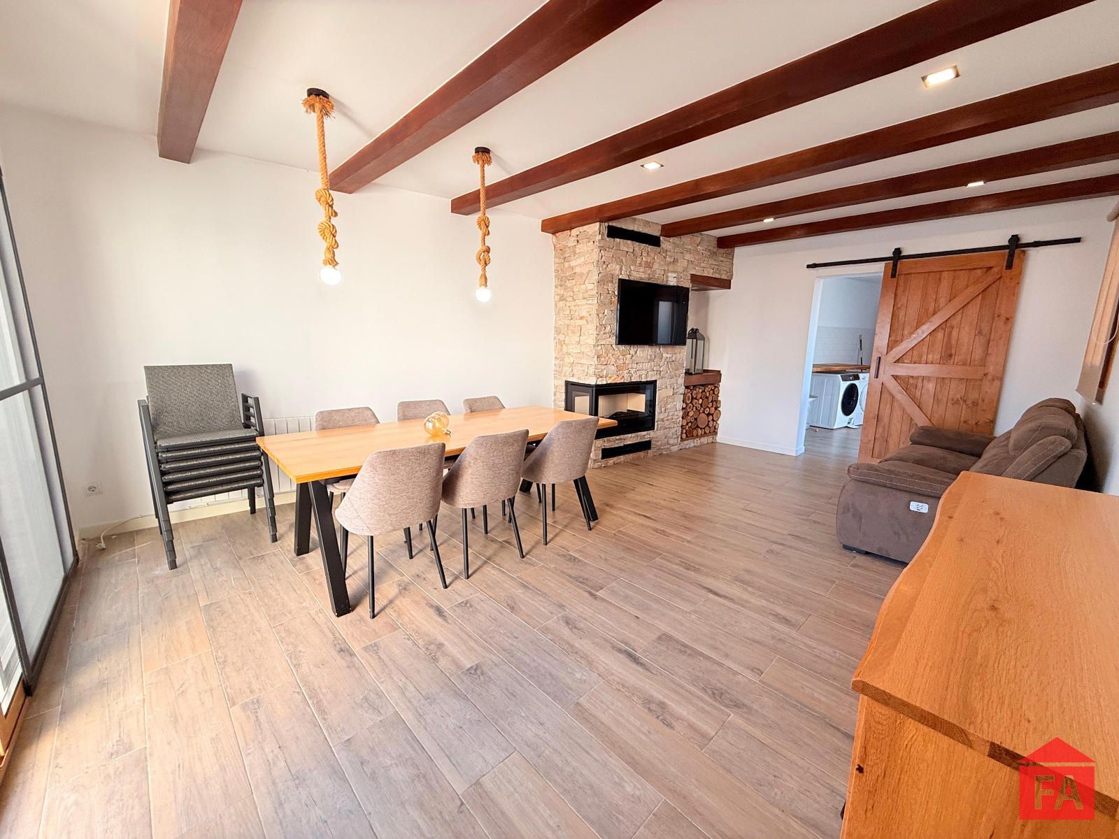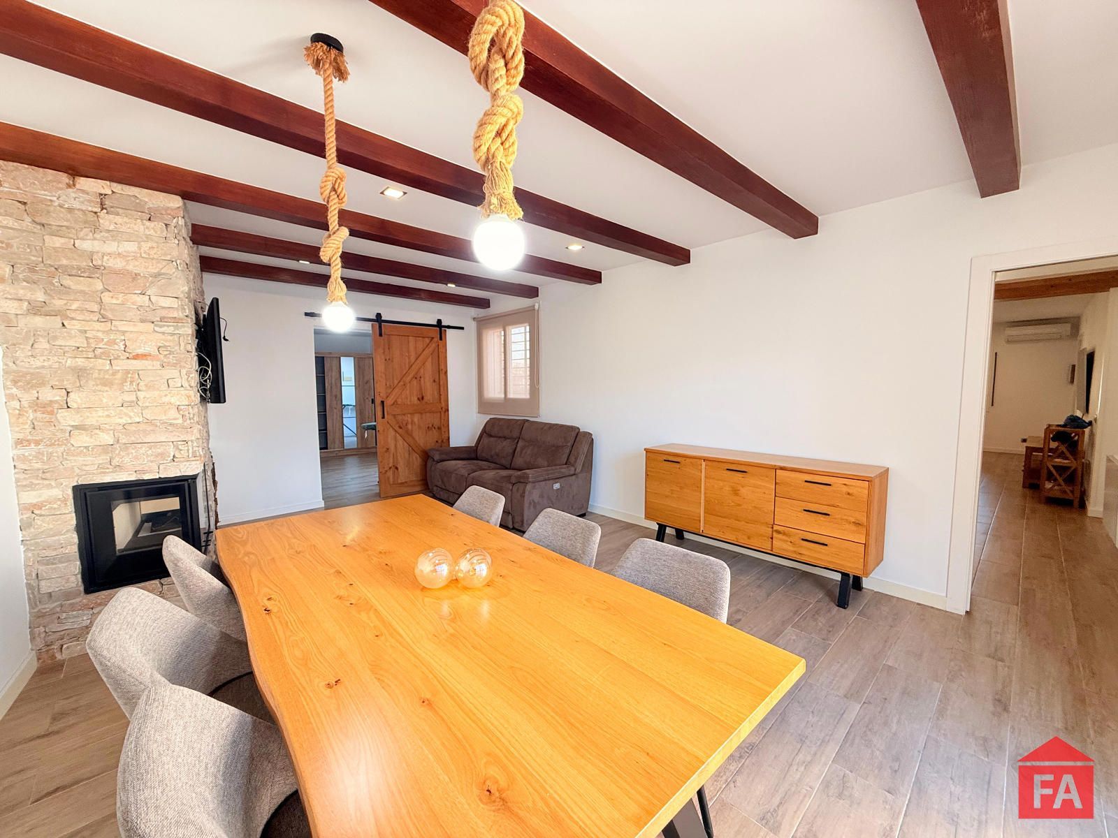 A continuación encontramos un segundo salón-comedor con chimenea, un espacio acogedor y sofisticado, con salida directa al exterior, ideal para disfrutar tanto en invierno como en verano. Desde esta estancia se accede a una práctica habitación-lavadero, equipada con descalcificador.
