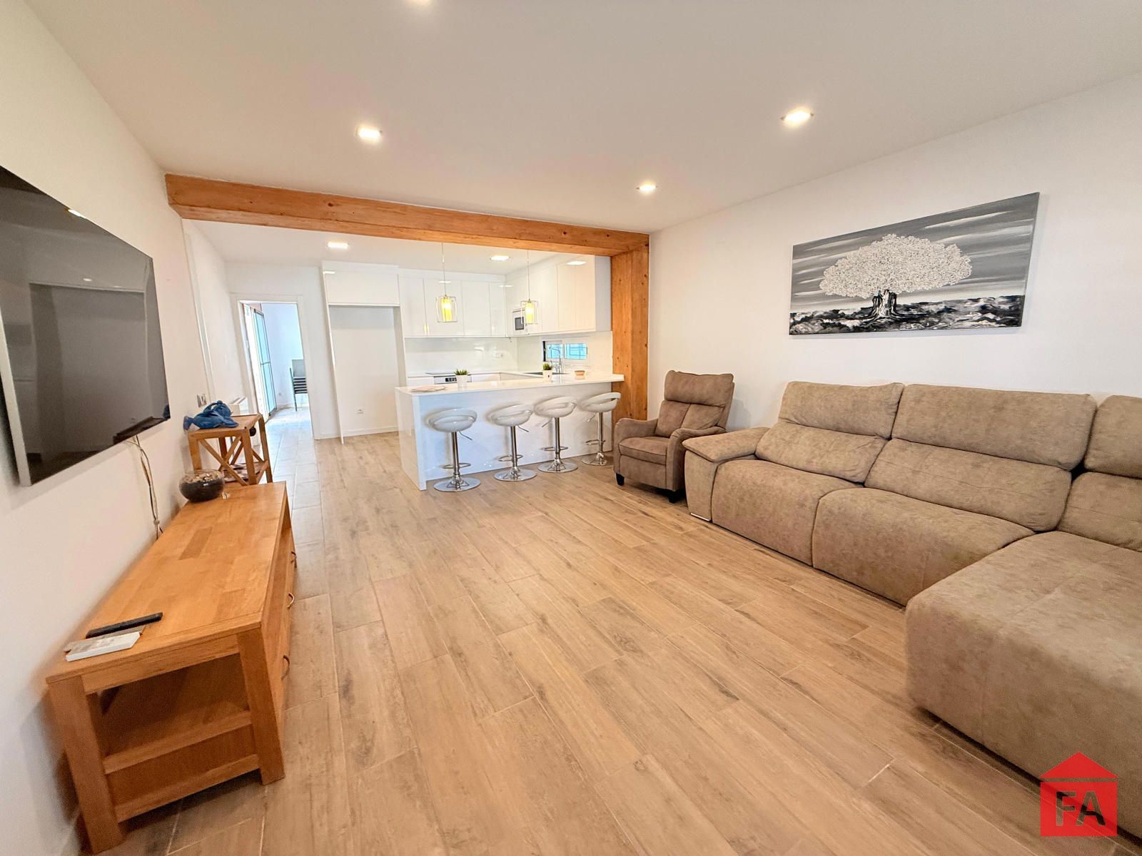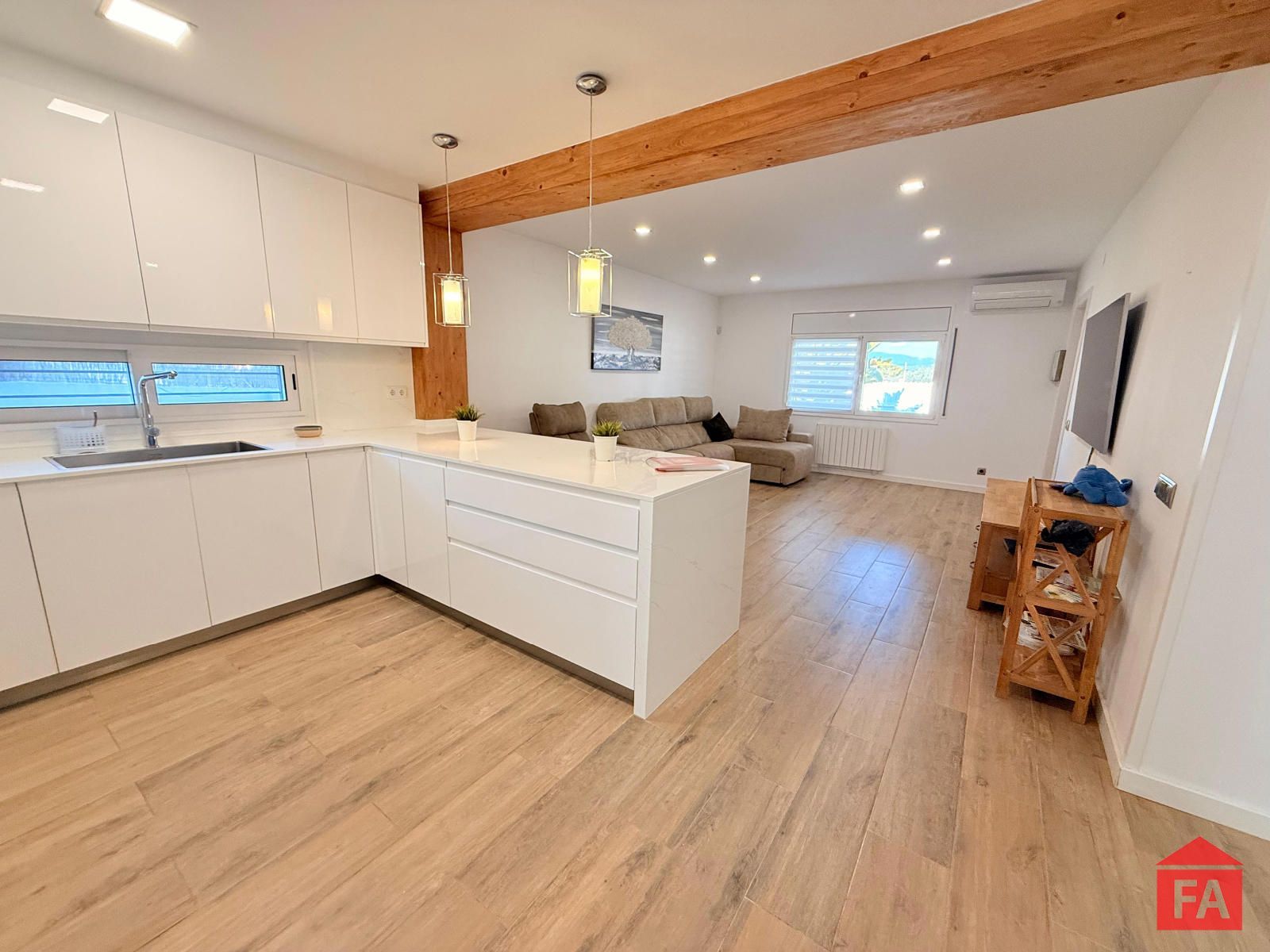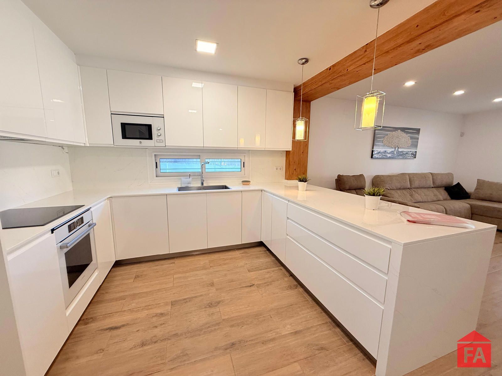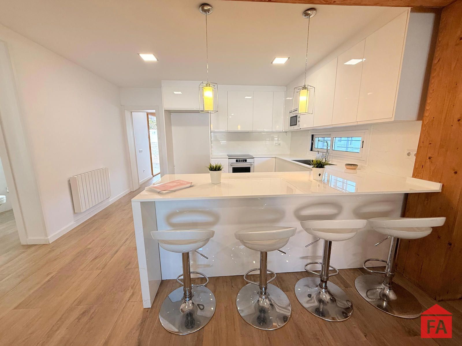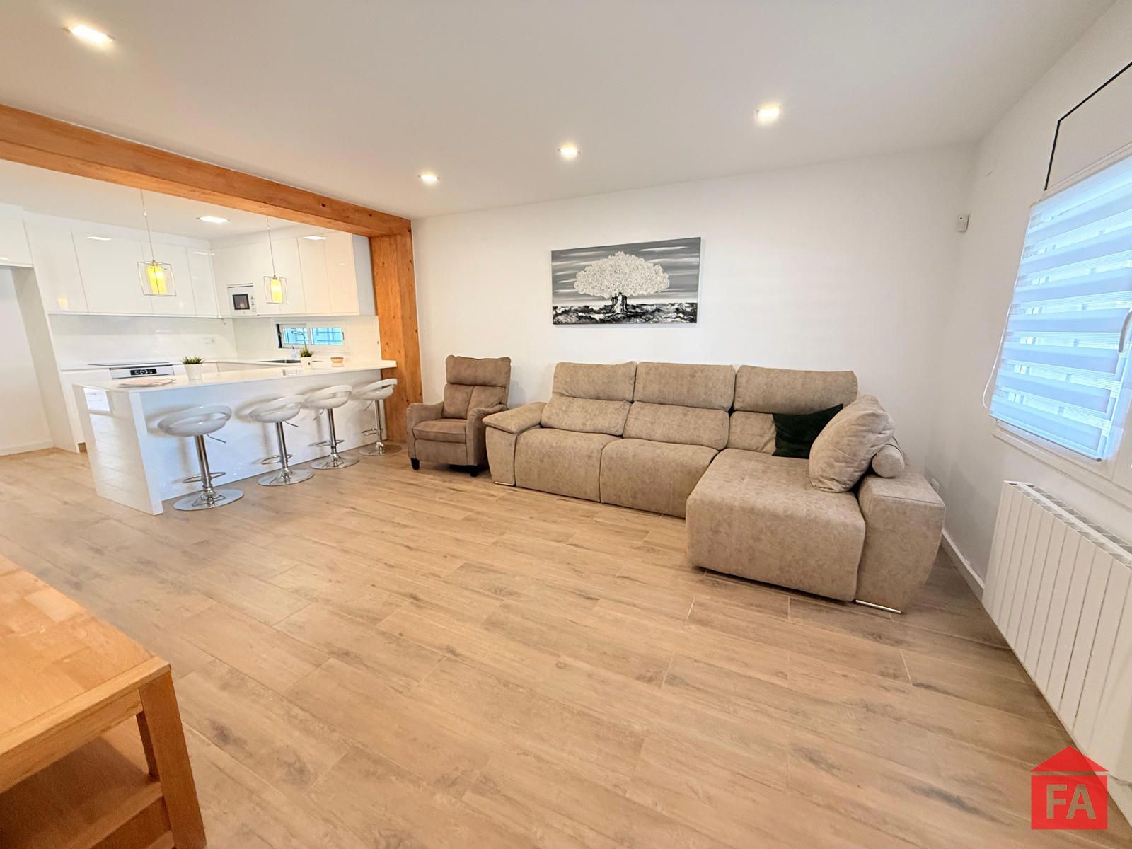 La vivienda destaca por su arquitectura contemporánea, sus espacios amplios y luminosos y por una cuidada selección de materiales de primera calidad. Al acceder a la propiedad nos recibe un elegante salón principal, abierto y muy luminoso, integrado con una moderna cocina de diseño con isla, perfectamente equipada y pensada para disfrutar del día a día y de reuniones sociales. Dispone de split de aire acondicionado, calefacción eléctrica y un excelente aislamiento gracias a sus paredes con cámara, lo que garantiza un óptimo confort térmico durante todo el año. La vivienda cuenta además con placas solares, aportando eficiencia energética y sostenibilidad.
