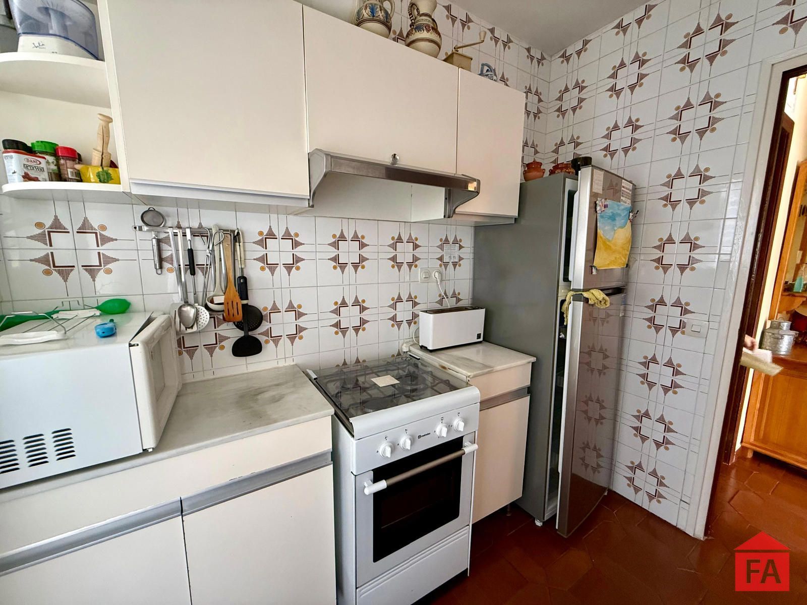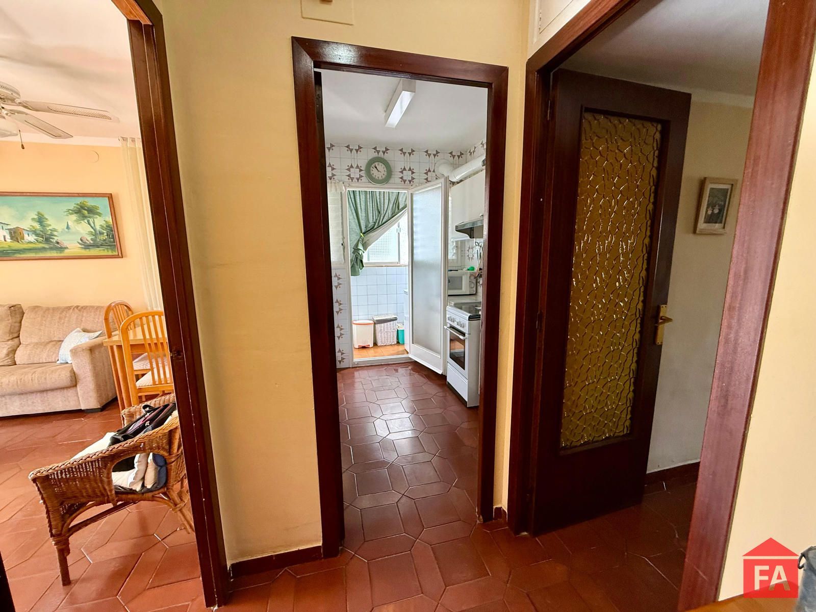 Cuenta con una cocina de origen con muchas posibilidades de actualización, que dispone de un lavadero conectado, aportando un espacio funcional y práctico. El baño dispone de bañera y la vivienda se distribuye en tres dormitorios exteriores, uno doble y dos individuales, todos con buena entrada de luz natural. Desde la parte trasera del piso se disfrutan de vistas completamente despejadas, aportando una agradable sensación de amplitud y tranquilidad.