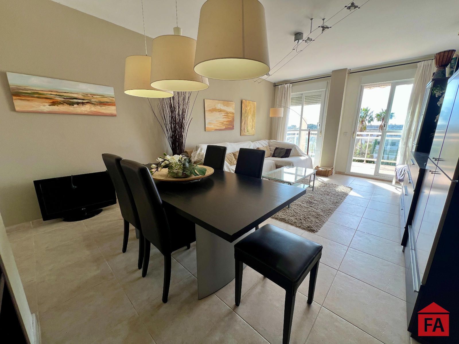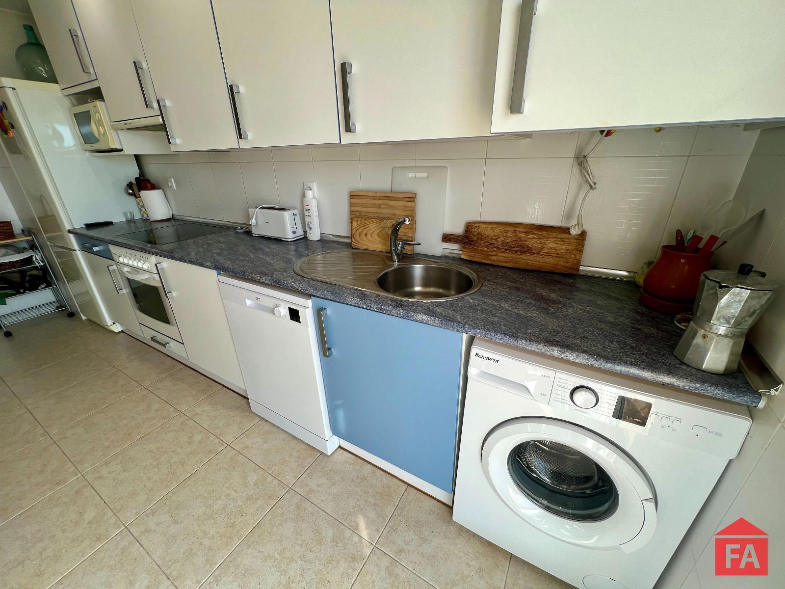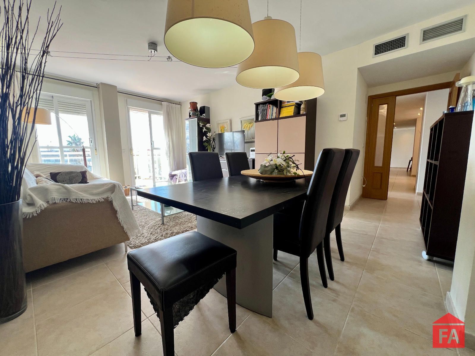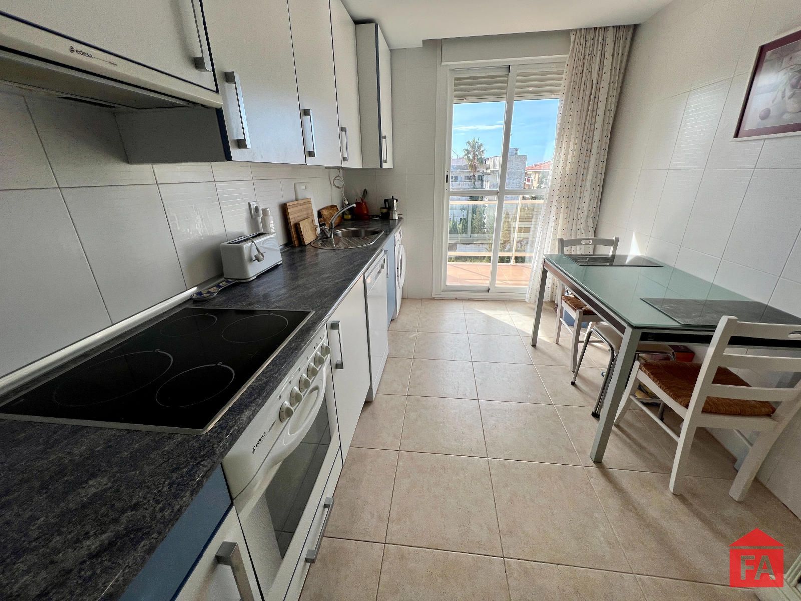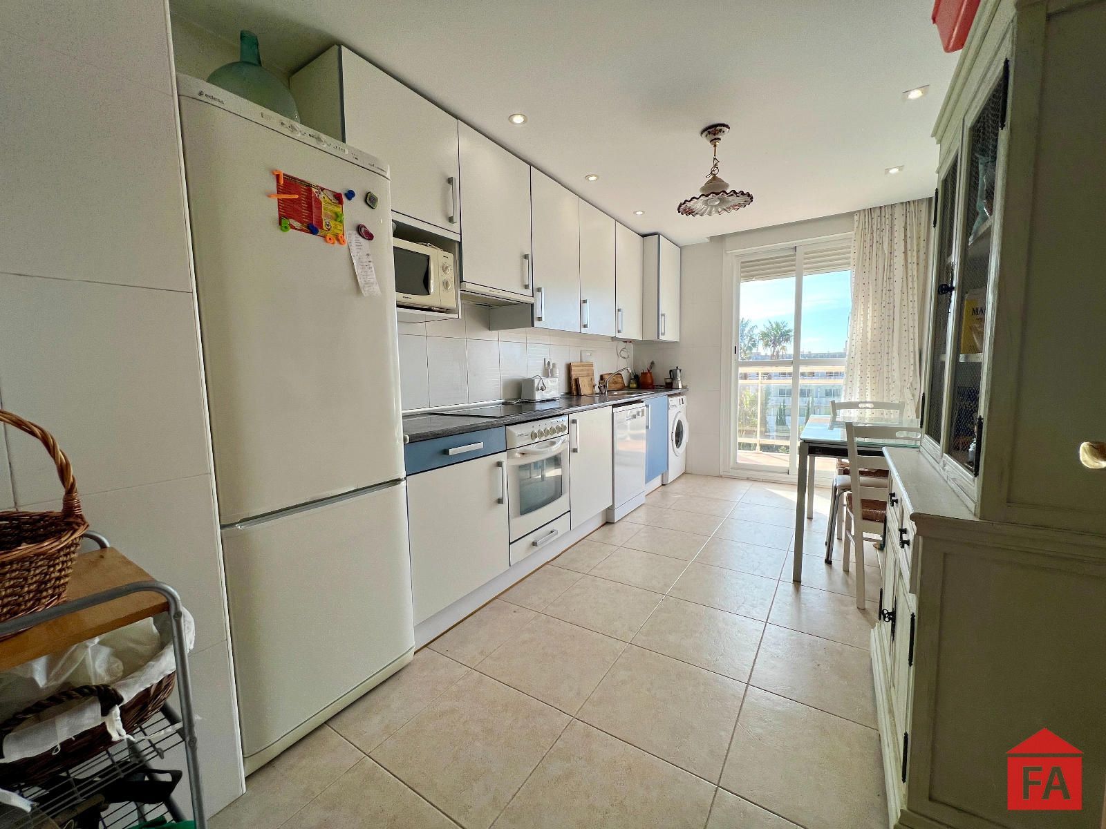 Desde el salón se accede a un agradable balcón con vistas al mar, ideal para relajarse y disfrutar del entorno. La vivienda destaca por su amplitud y orientación al sud.