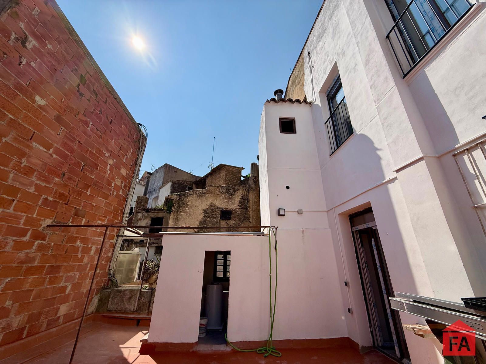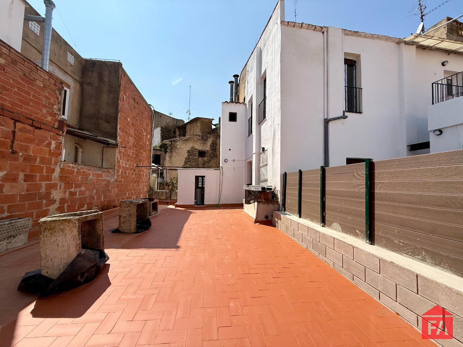 En la terraza se ha habilitado una práctica construcción adicional que se ha transformado en lavadero independiente, aportando funcionalidad extra al espacio.