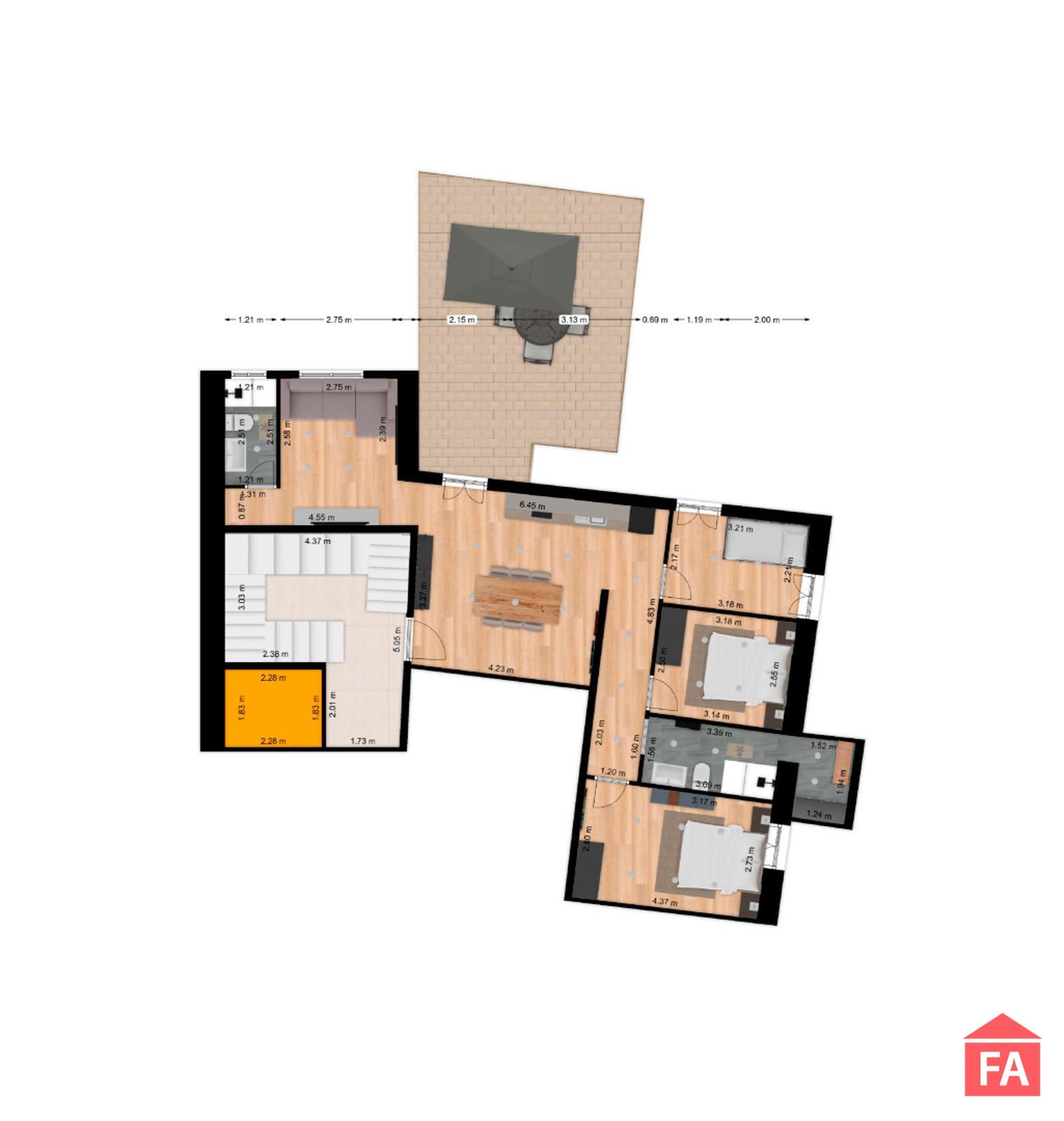 Desde la cocina se accede directamente a la amplia terraza, un espacio ideal para crear diferentes ambientes y disfrutar durante todo el año.