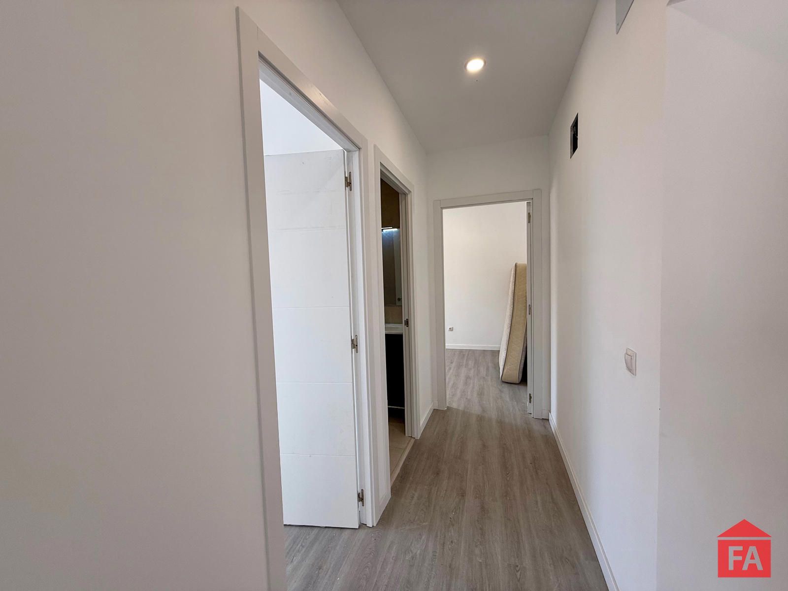 El acceso a la vivienda se realiza a través de la cocina, desde donde se organiza de forma práctica la distribución. A mano izquierda encontramos una acogedora zona de salón, junto a un baño completo con plato de ducha y mampara.