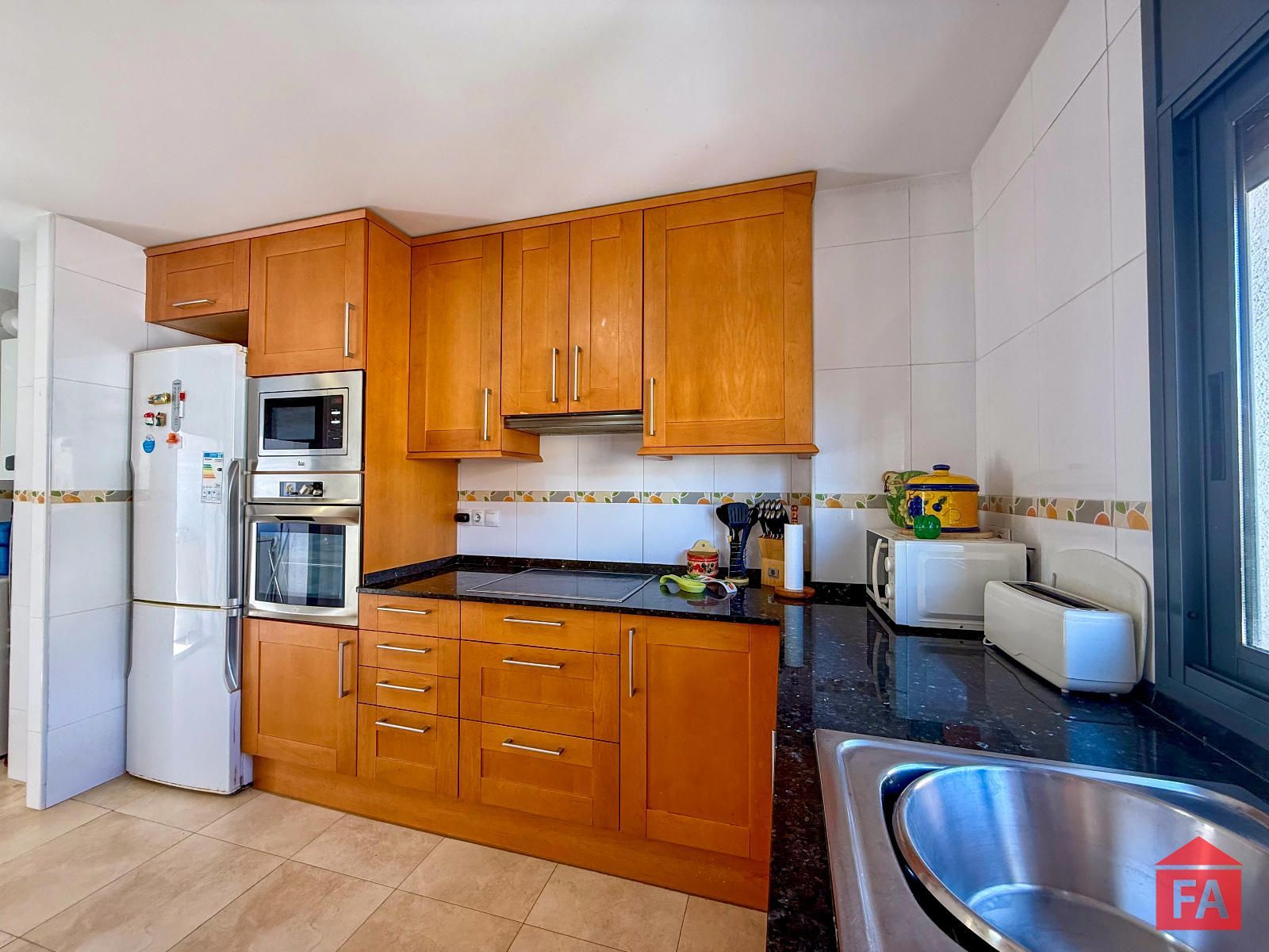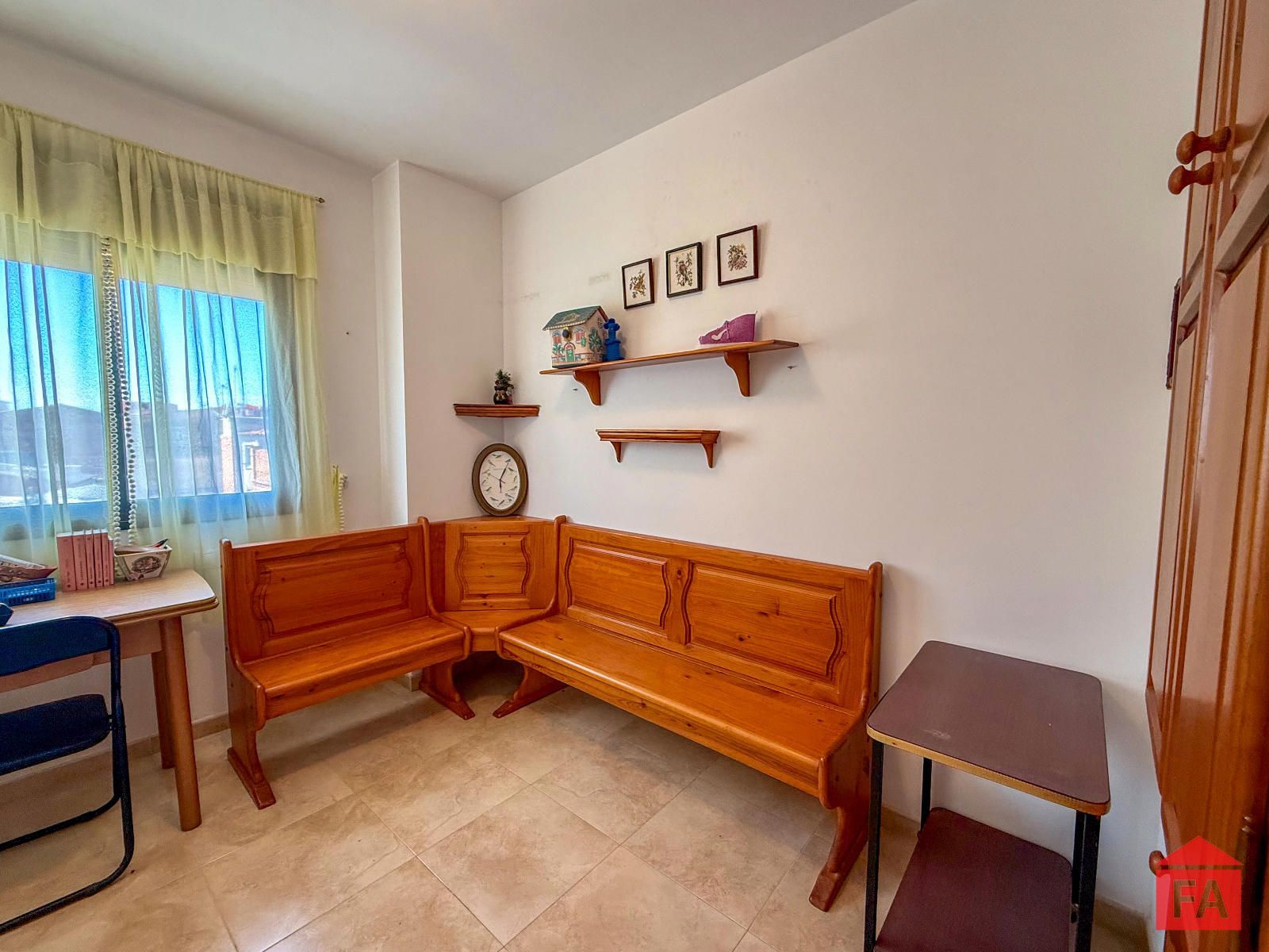 De puertas adentro nos encontramos una propiedad muy luminosa y con una cómoda distribución. El recibidor da paso a un amplio salón comedor con salida a un agradable balcón donde poder disfrutar del aire libre. La cocina es independiente y muy espaciosa, con abundante espacio de trabajo y almacenamiento y salida a un pequeño balcón ideal para su uso como lavadero.