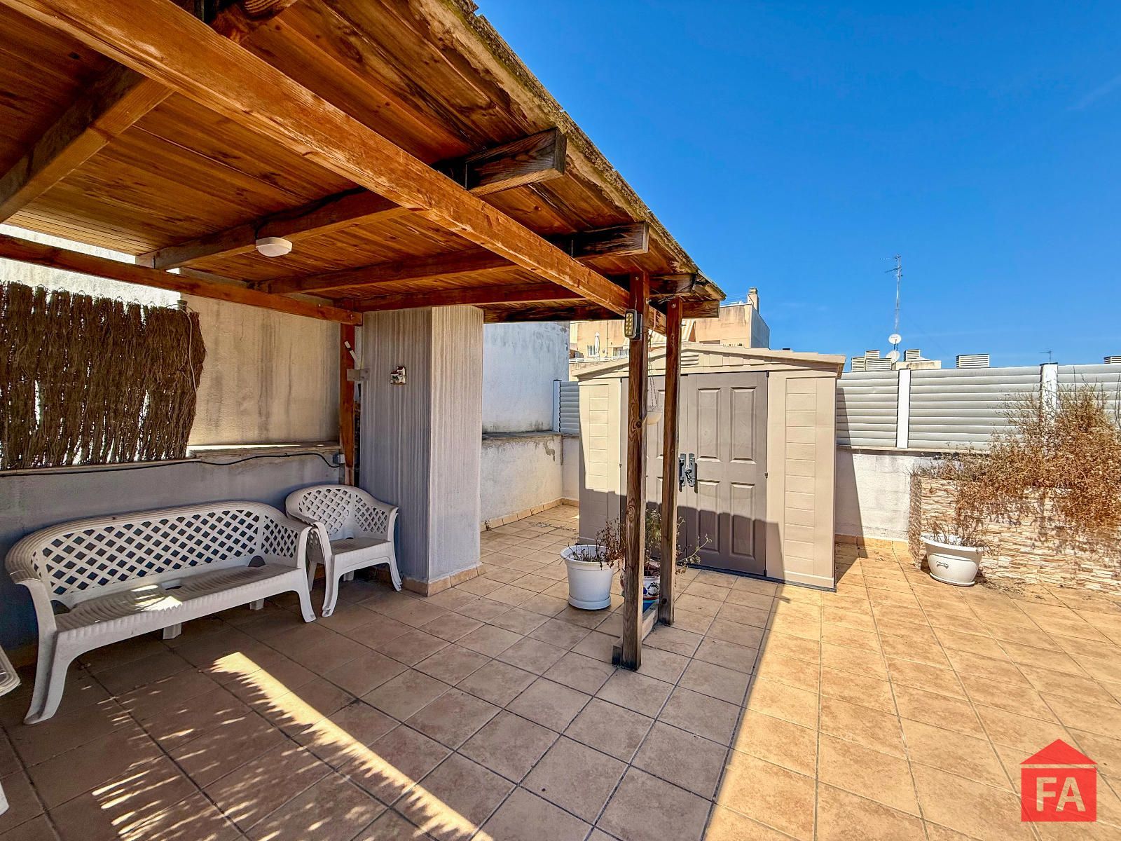 Pero lo que hace a esta propiedad realmente especial es su gran solárium privado de uso exclusivo, accesible directamente desde la vivienda. Un gran espacio muy versátil, donde podrás crear tu propia zona chill-out, organizar barbacoas con amigos o simplemente disfrutar del sol con total privacidad.