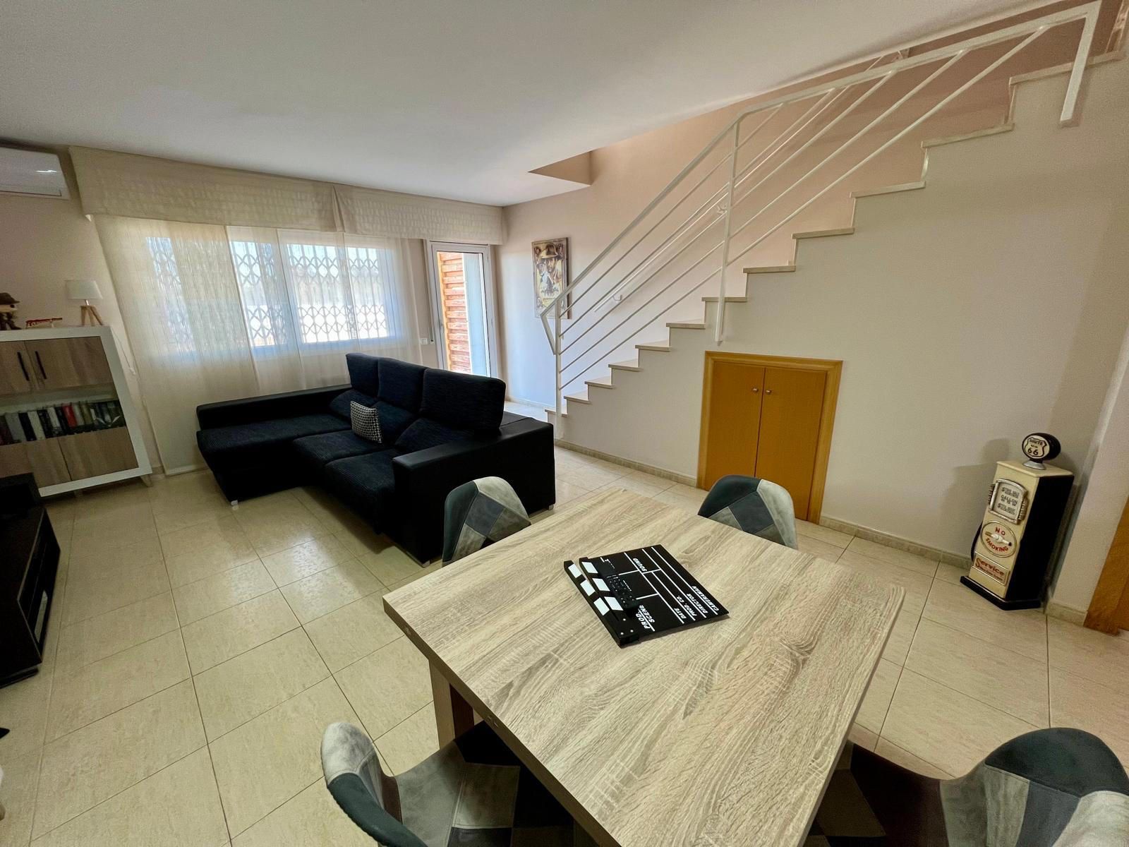 Amplia adosada con 4 dormitorios, baño y aseo, cocina reformada, salón comedor con chimenea. Garaje para 1 coche con baño. Jardín privado con preciosa cocina exterior con barbacoa. Situada en una de las mejores zonas de El Vendrell.